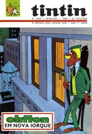 Ne vous méprenez pas : ce TINTIN apparemment tout semblable au vôtre, est PORTUGAIS, comme l'indique son slogan « Revista dos Jovens dos 7 aos 77 ». Il a 32 pages, un supplément de jeux et de courrier de 4 pages, et publie pour le moment « Le Piège Diabolique » (Mortimer), les aventures de Clifton à New York, le « Commando Caïman » de Bruno Brazil, Wilbur et Mimosa, Luc Orient et « La Planète de l'Angoisse », Max l'Explorateur, Achille Talon, Lucky Luke et Bernard Prince.