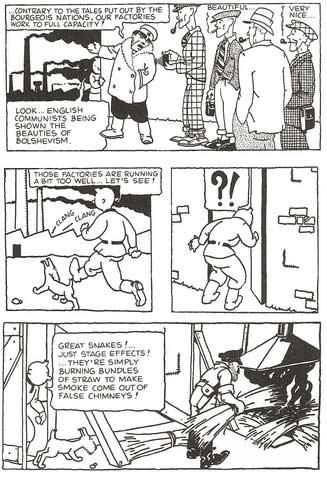 Hergé não encontrou na altura objecções, e fez do livro Tintin no país dos sovietes o primeiro da série As aventuras de Tintin. Vários outros livros subsequentes cantaram sucessivamente os benefícios do colonialismo belga (Tintin no Congo) ou da civilização norte-americana (Tintin nos Estados Unidos), naquilo que para vários críticos era uma linha consistente de propaganda conservadora dirigida a públicos infantis.